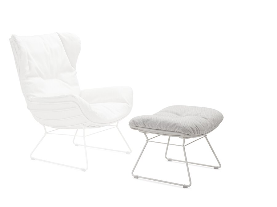 Филигранная, устойчивая к атмосферным воздействиям рама имеет плавные линии, создающие каркас стула. Обивка может быть исполнена в различных тканях. Leyasol выглядит одновременно как металлический объект и произведение искусства.