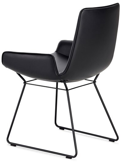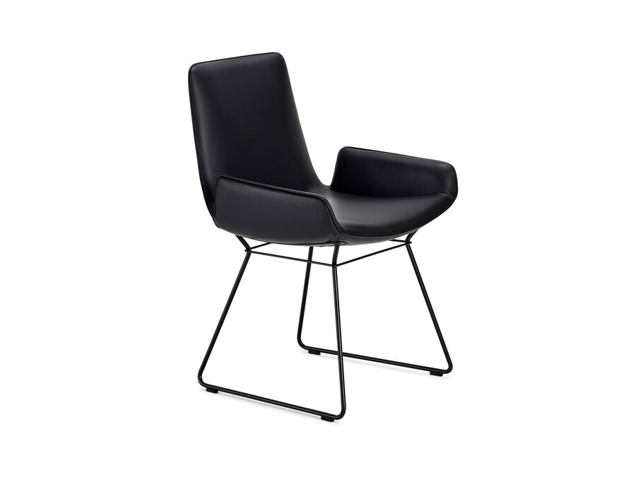 Корпус сиденья полностью обтянут (на выбор) тканью или кожей, лицевая и задняя часть могут быть покрыты различными материалами, что придает стулу неповторимый вид. Вы также можете выбрать основание этого кресла по своему вкусу: элегантный дуб, окрашенный в различные цвета, или изящный каркас из стали с порошковым покрытием.